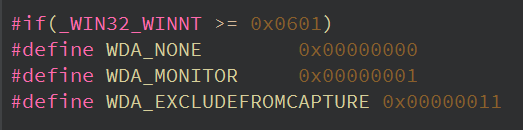 - WDA_EXCLUDEFROMCAPTURE : 녹화 & 캡쳐 방지 적용 ( 창이 아예 안보임, Windows 10 이후)