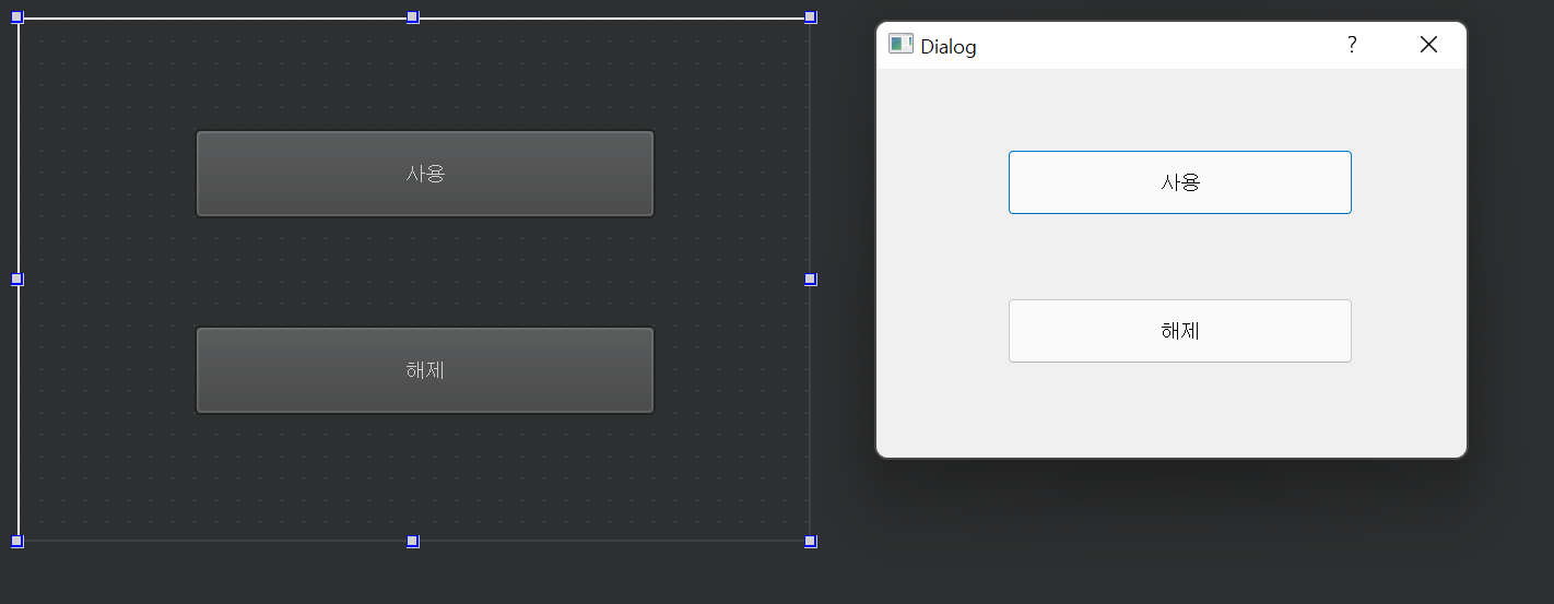 타이틀 바를 빼면 Qt Designer와 동일한 사이즈가 되었습니다.