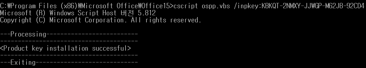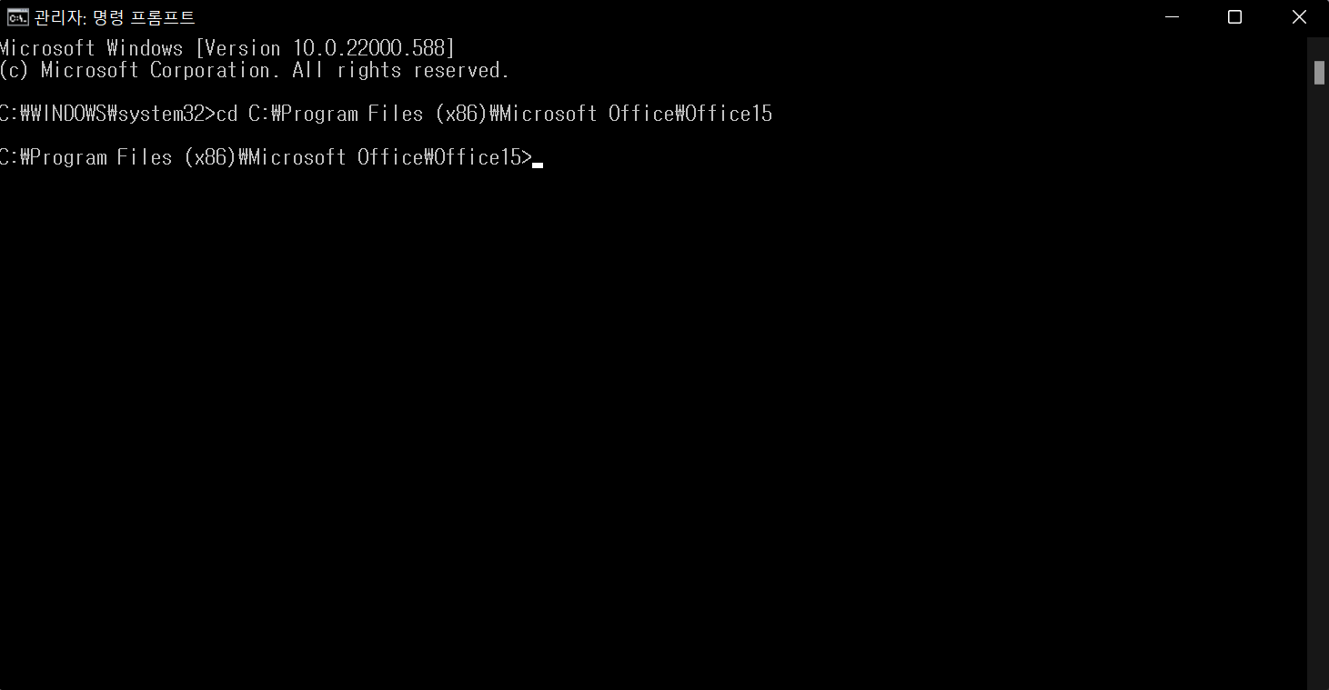윈도우가 32bit 의 Office 2013 경우 ☞ cd C:\Program Files (x86)\Microsoft Office\Office15