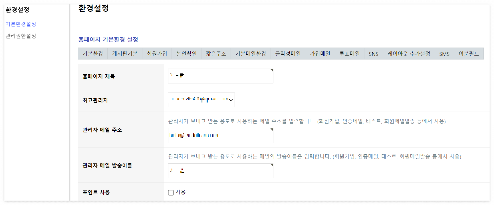 https://도메인/adm 으로 들어가 관리자로 로그인을 한 후 환경설정>기본환경설정 에서,